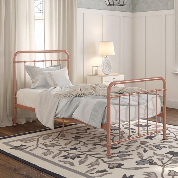 Merax vintage metal bed frame with headboard details. Brushed gold twin metal bed $220. Quick assembly twin black metal bed frame with wood slats. Topbuy full size metal canopy bed frame w/ 4 poster steel slats gold/pink/sliver. The graco premium foam crib & toddler bed mattress is the best mattress choice for your newborn, infant, or toddler. A twin bed is normally 44 inches wide and 79 inces long. Nestfair vintage look metal frame bed. The 1950s were a time of classic lines, simple tastes, and solid colours, which we've captured here in the stunningly minimalist matheney bed, made from the sturdy metal frame. Sadie pu and dark champagne king upholstered bed with storage. White twin white metal frame day bed this white metal twin bed will be a lovely this white metal twin bed will be a lovely addition to any bedroom. Aoolive vintage look twin metal bed frame, gold. Right now, this bed doesn't have any reviews. Has a regal look that will brighten your bedroom.